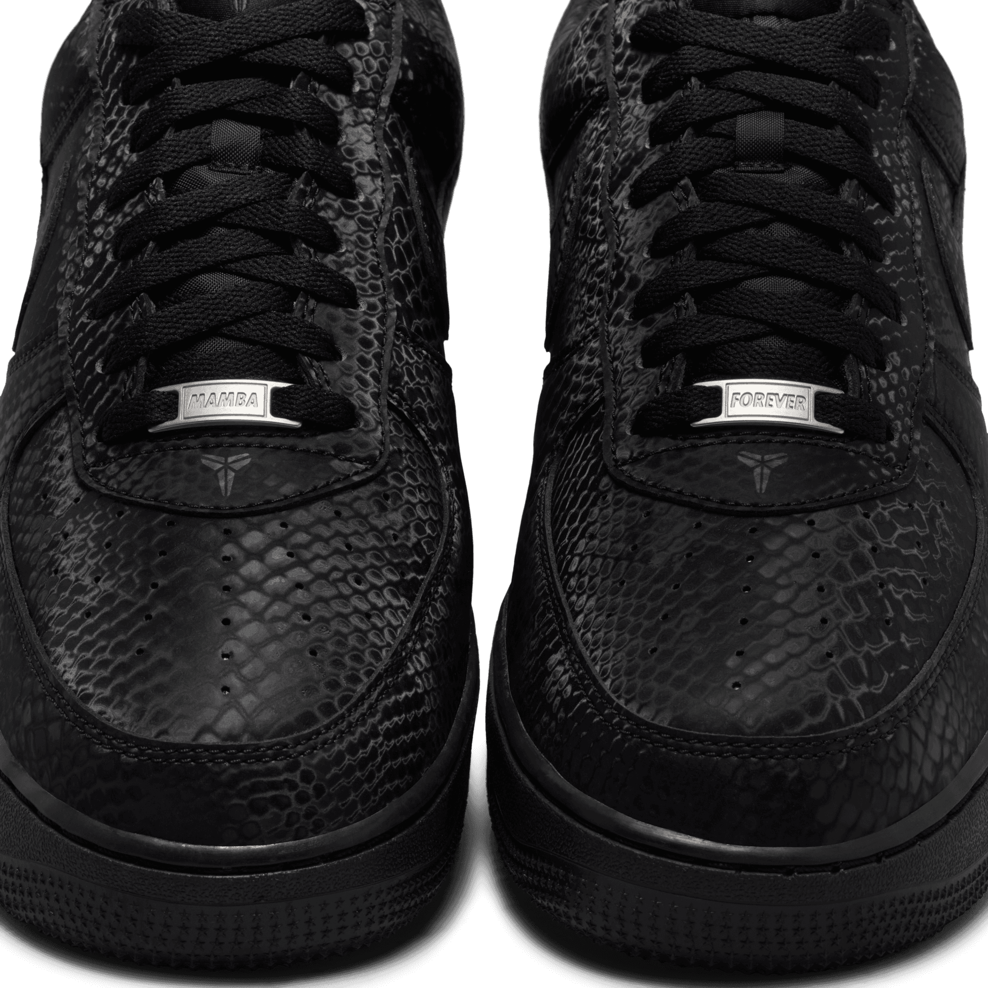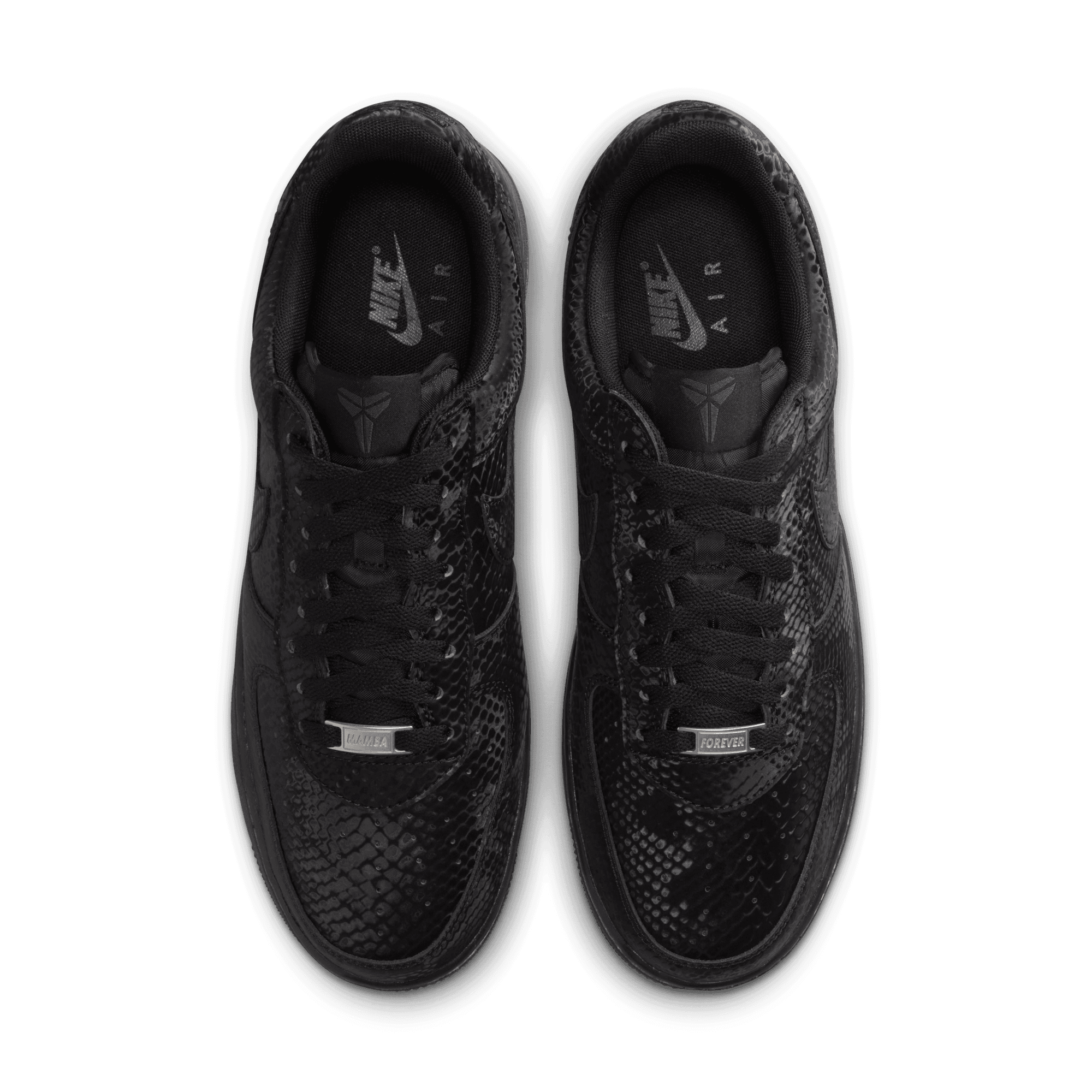 This special-edition AF1 is infused with Mamba DNA, like the allover snakeskin print—putting a distinct spin on an all-time classic. The embroidered "8" and "24" on the heel nod to Kobe's retired jersey numbers, while Sheath logos on the tongue and outer heel add signature branding. Complete with special "Mamba Forever" lace dubraes, this Kobe AF1 continues the legacy.