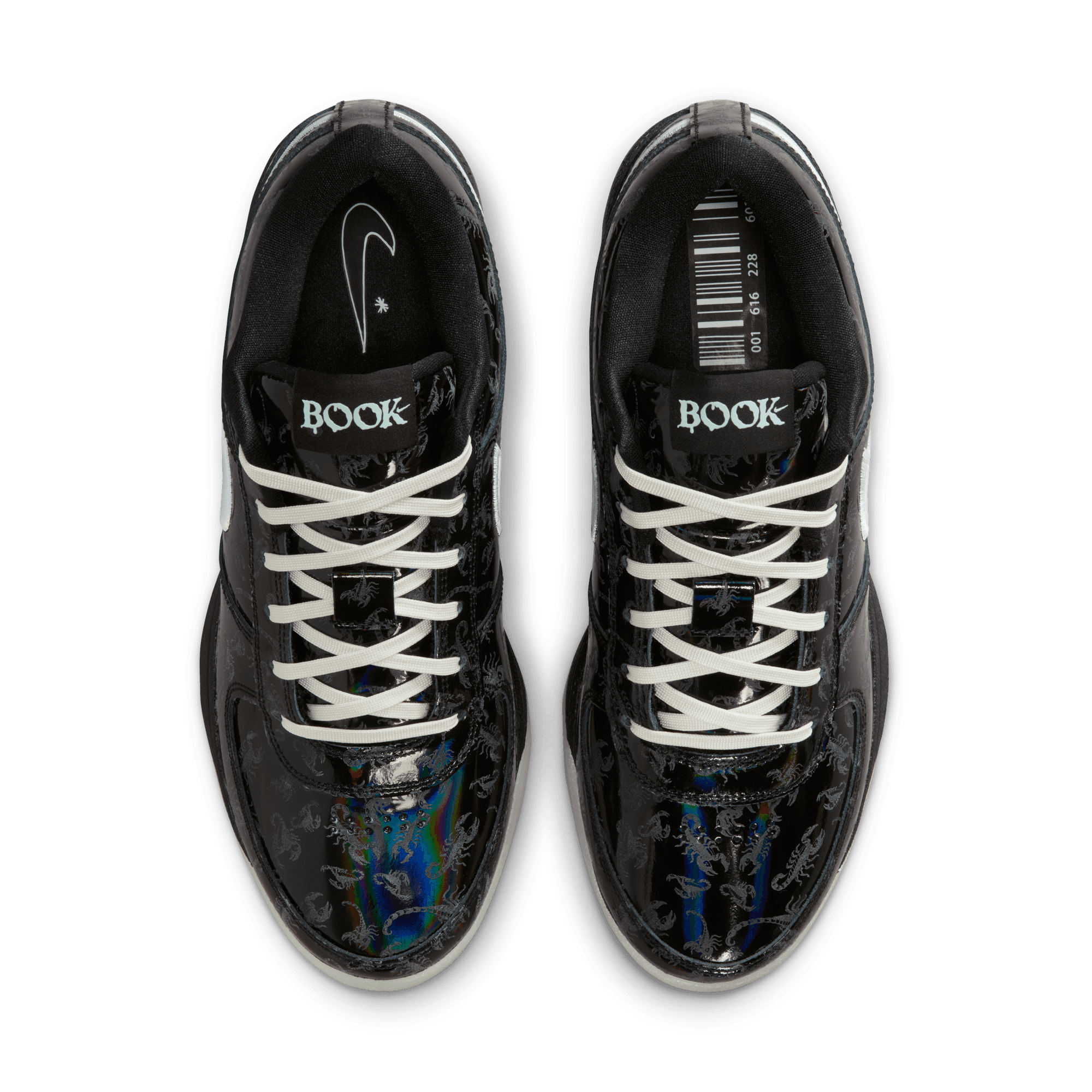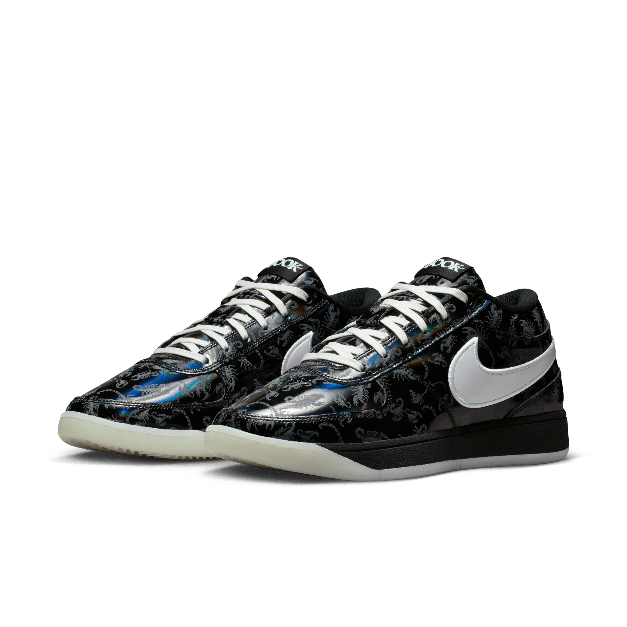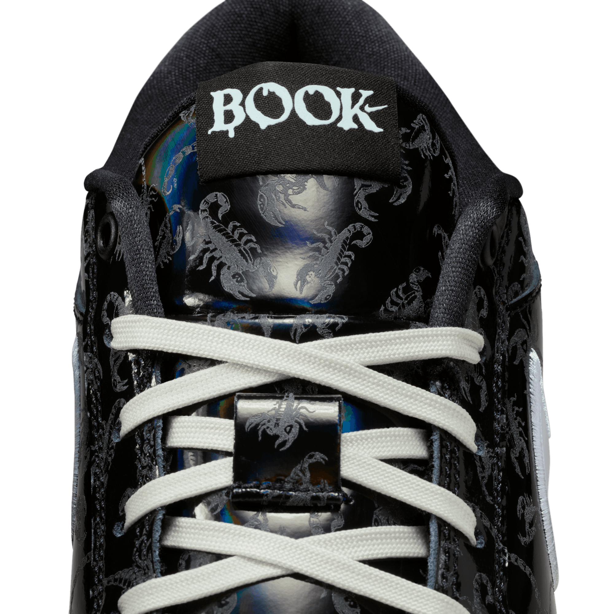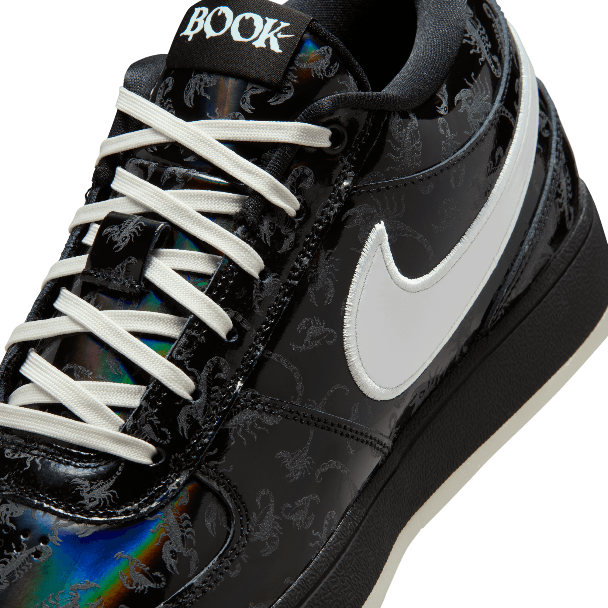 It's slim pickings trying to locate a Arizona Bark Scorpion during the day. But shine a UV light along the desert floor at night and these creepy critters actually glow—just like Book when he’s lighting up a defense with a 30-piece. This special Book 1 takes on the arachnid’s attributes and then some. The black-rainbow upper comes with a printed scorpion pattern that’s visible under UV lighting. And, a glow-in-the-dark outsole completes a look ready for slithers to the rim and scurries around the floor. With its extra-durable rubber outsole, this version gives you traction for outdoor courts.