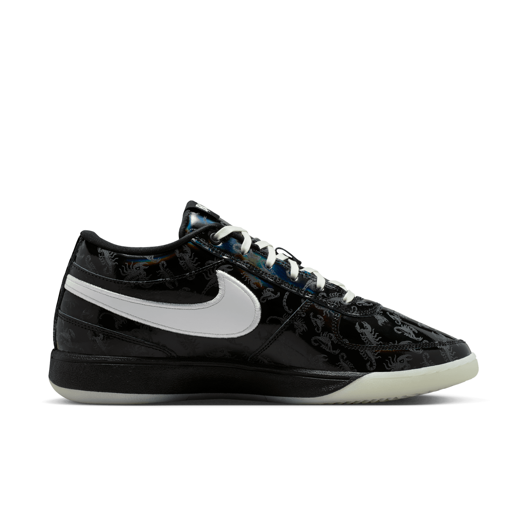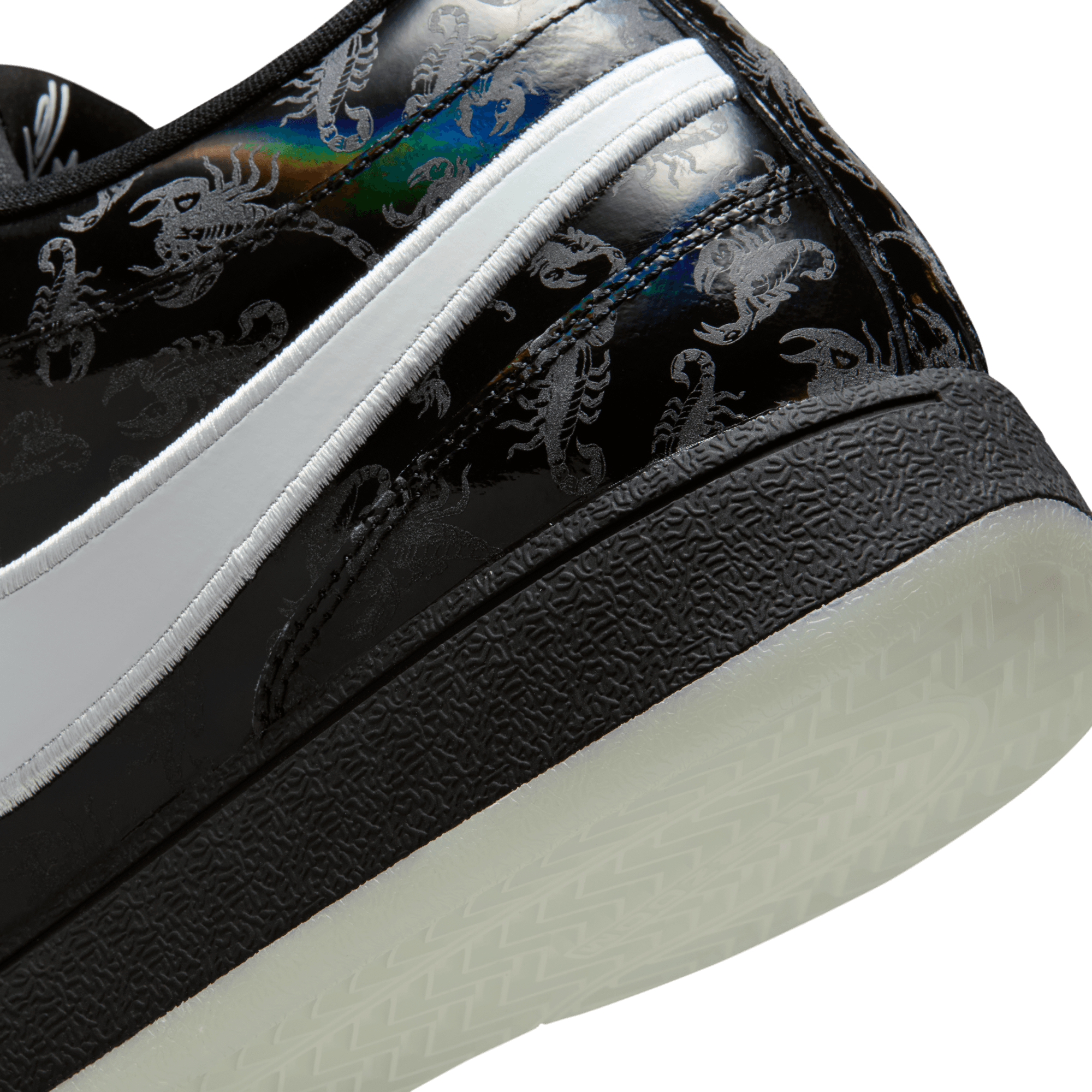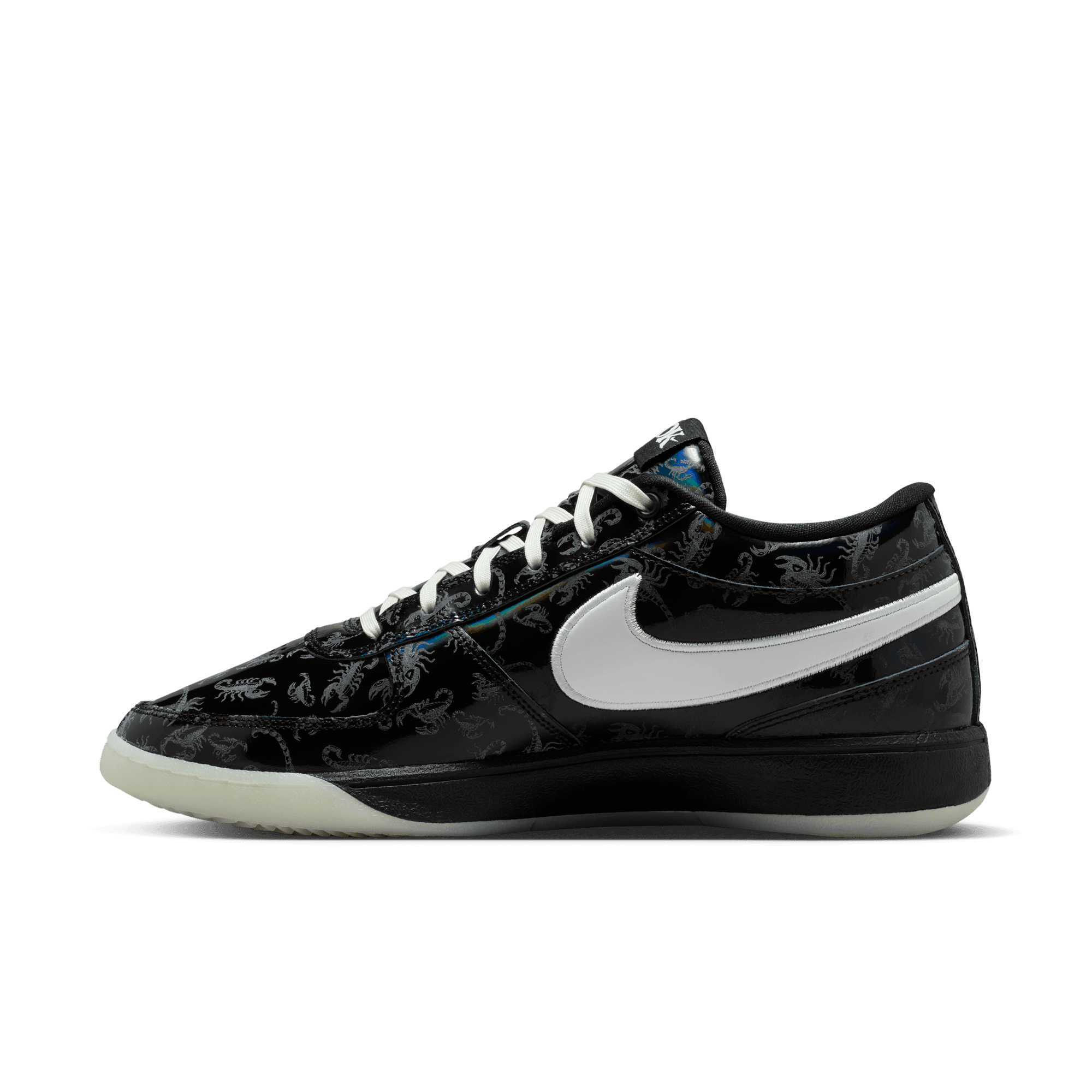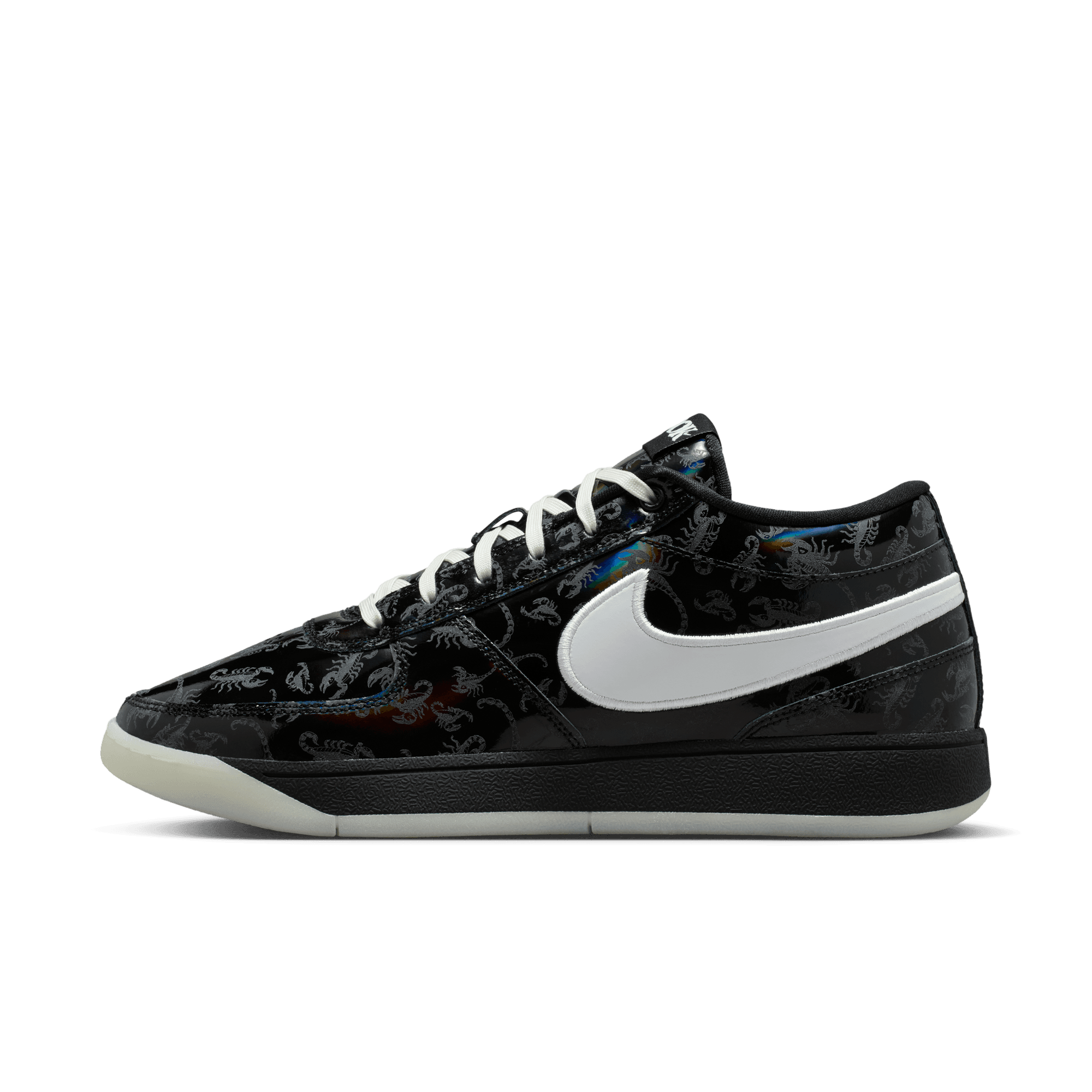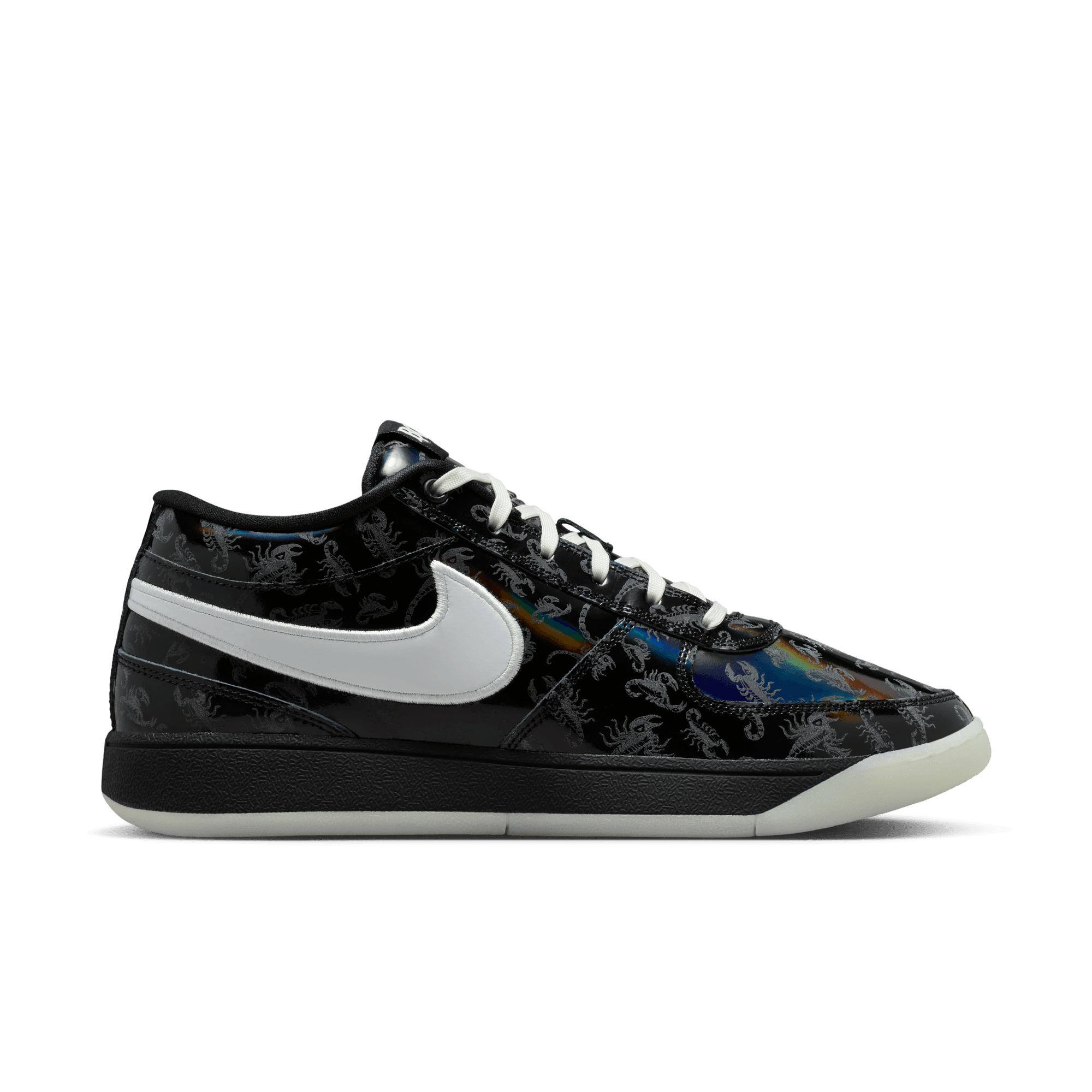 It's slim pickings trying to locate a Arizona Bark Scorpion during the day. But shine a UV light along the desert floor at night and these creepy critters actually glow—just like Book when he’s lighting up a defense with a 30-piece. This special Book 1 takes on the arachnid’s attributes and then some. The black-rainbow upper comes with a printed scorpion pattern that’s visible under UV lighting. And, a glow-in-the-dark outsole completes a look ready for slithers to the rim and scurries around the floor. With its extra-durable rubber outsole, this version gives you traction for outdoor courts.