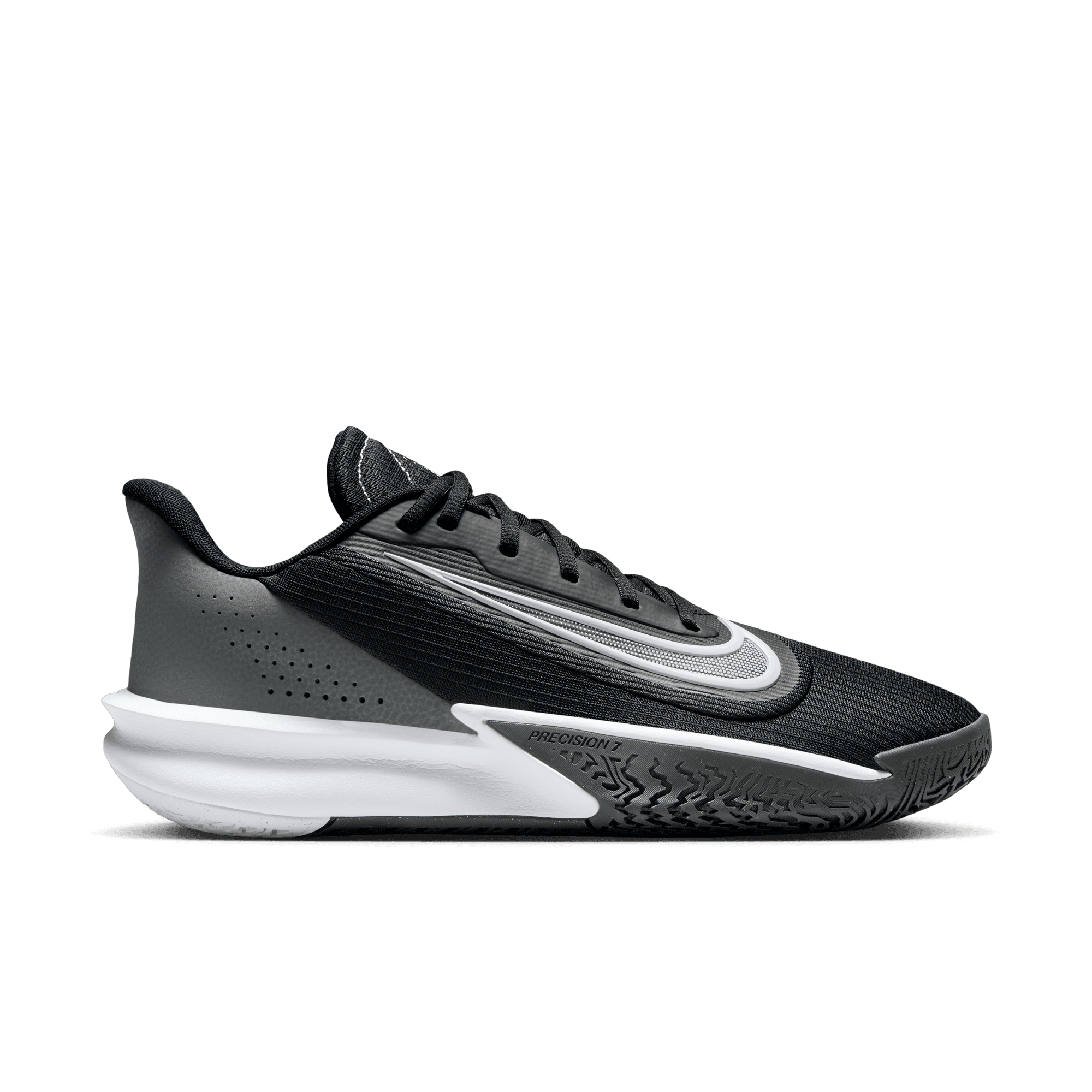 Nike Precision 7 Men's Basketball Shoes Score at will at the rim or from deep in the Nike Precision 7. Crafted with a combination of ground control, comfort and on-court traction, it's perfect for instant impact plays when your name is called for the next pickup game. Check in and make the plays that swing the outcome in your favor. All-Game Comfort Plush foam on the collar and tongue enhances the feeling of comfort around the ankle and over the top of the foot—areas where you want no distractions. It helps strike a sound balance between ground control when changing sudden direction and comfort when racing from one end of the floor to the other.