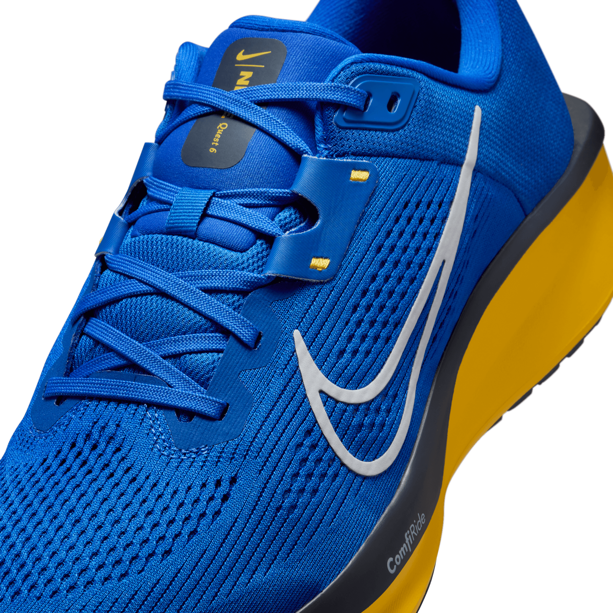 The Nike Quest 6 is for runners of all levels. But make no mistake, it's anything but entry-level. A supercomfortable and supportive midfoot fit band helps keep you stable for your miles. Plus, a supersoft midsole foam helps cushion each step.