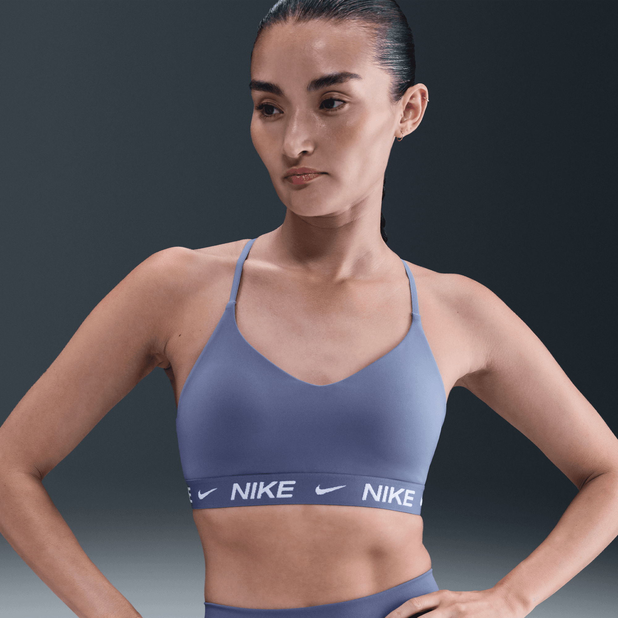 Don't let anything get in the way of expressing yourself in this sleek, low-profile sports bra. Its light support gives you a gentle hold with plenty of freedom that's great for low-impact workouts or all-day comfort. Smooth, quick-drying fabric gives the bra a clean finish so you can wear it your way.