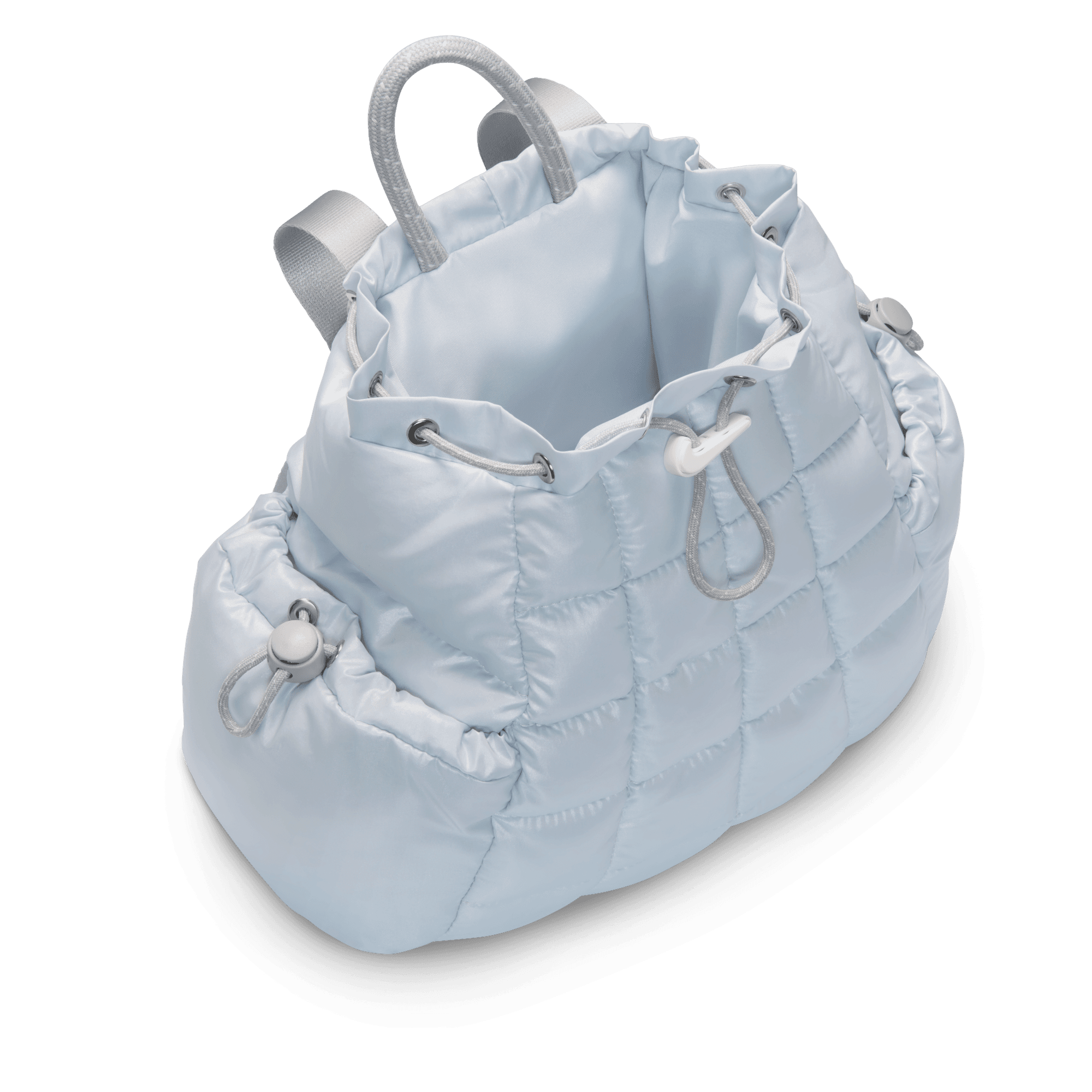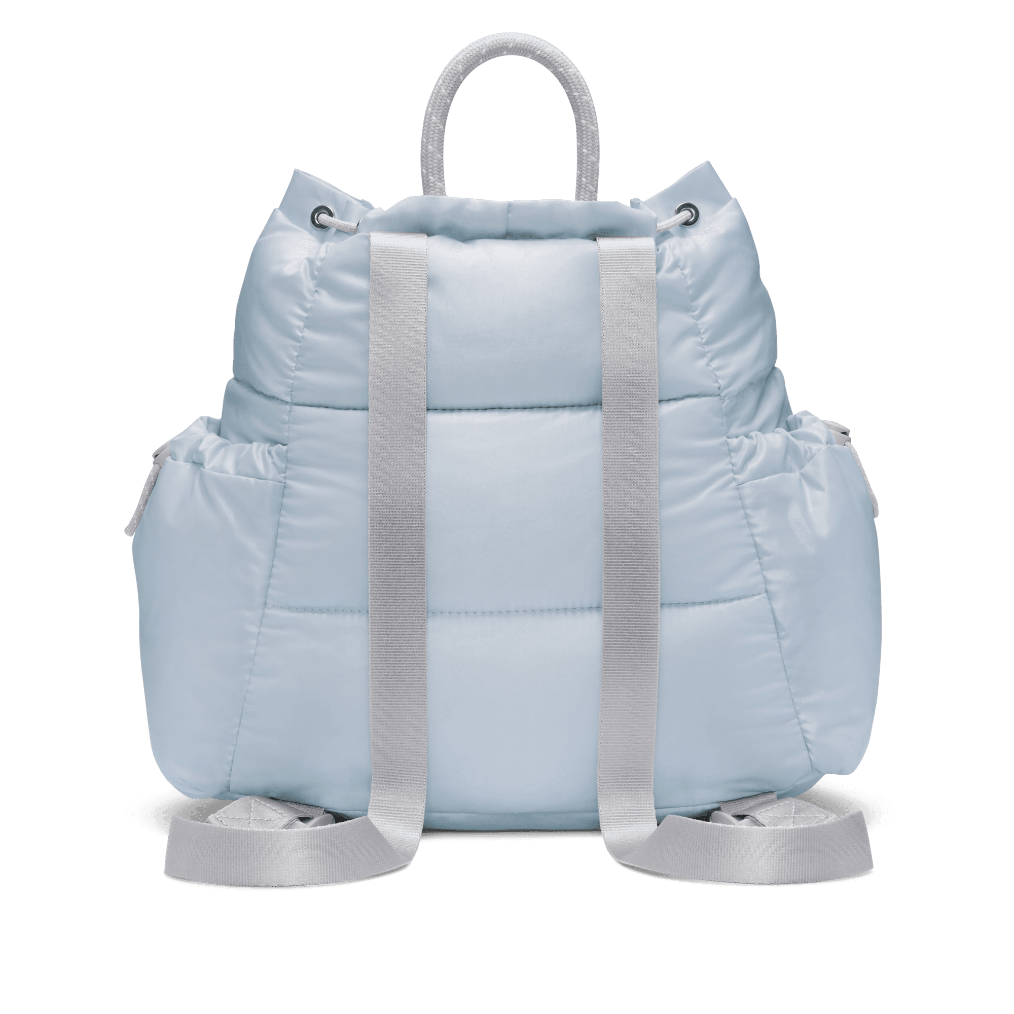 Carry your stuff in style. This mini backpack features luxe materials and a puffer design. The large, main compartment has a cinch closure with Swoosh logo cord lock to secure your belongings. Cinched side pockets help keep you organized.