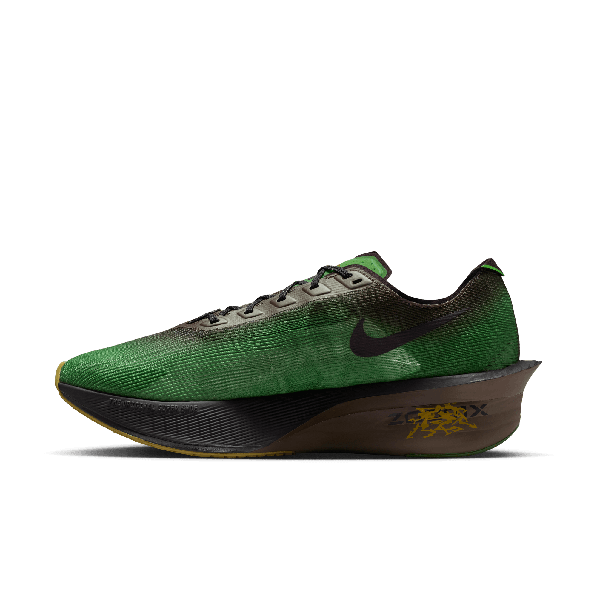 Nike ZoomX, our most responsive foam, just got lighter. Running from heel to toe, it unlocks even more energy return than before with a slight midsole reduction, giving you a bouncy feel.