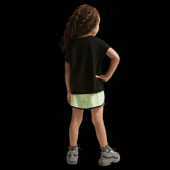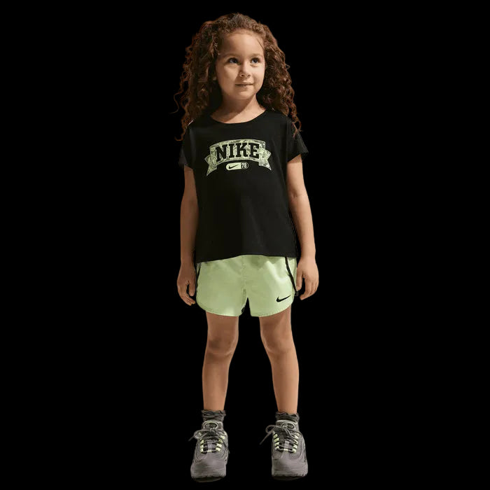 This two-piece set is an essential choice for your child while playing in the playground or play area. The printed T-shirt has a smooth, boxy cut with a no-tie crew neck for easy, non-irritating comfort, and dropped shoulders for a comfortable fit. It is complemented by matching shorts enhanced with Nike Dri-FIT technology to help keep your child cool while playing, with an elastic waistband for a comfortable fit and a built-in lining that provides full coverage and freedom of movement.