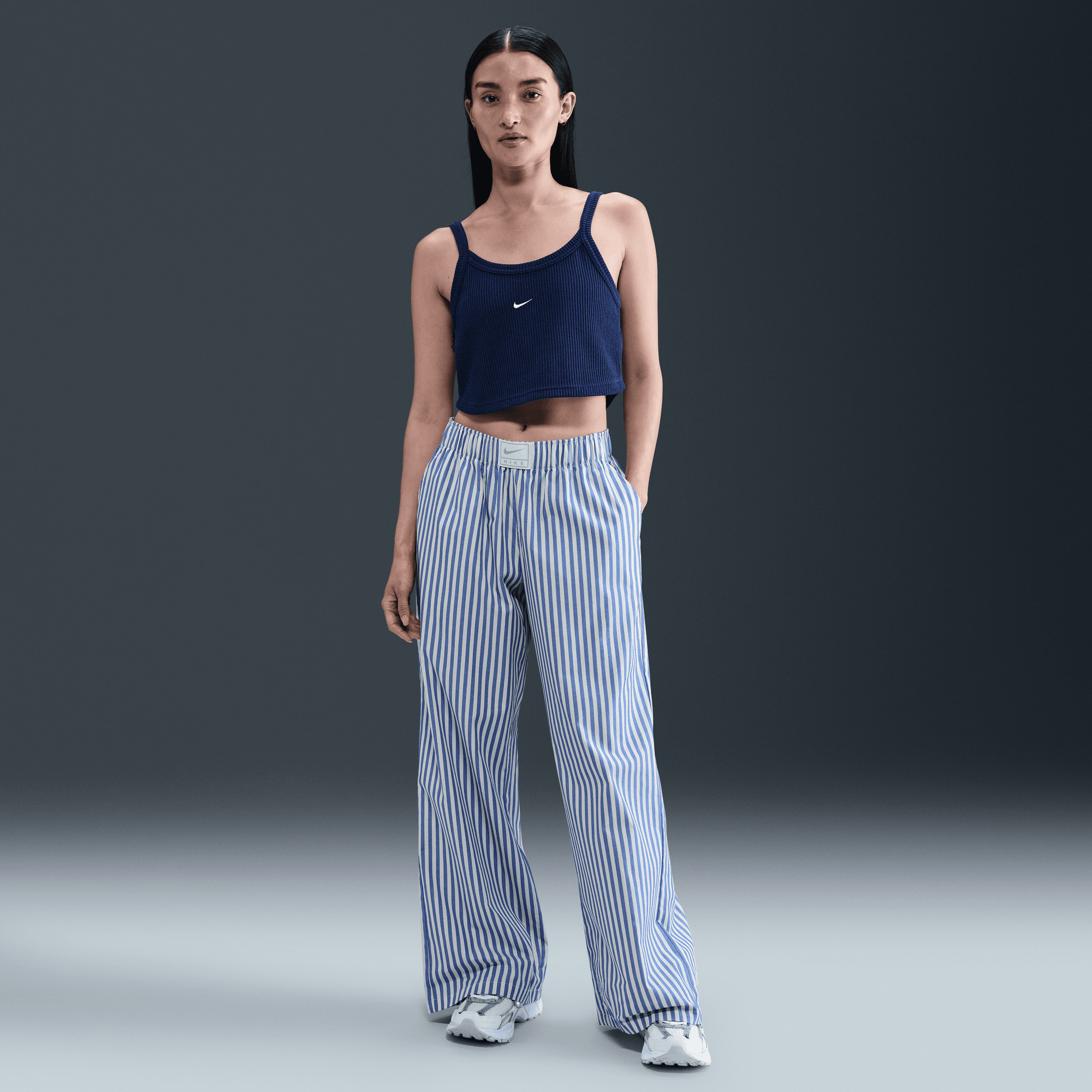 NIKE SPORTSWEAR CHILL POPLIN WOMEN'S MID-RISE LOOSE STRIPED PANTS