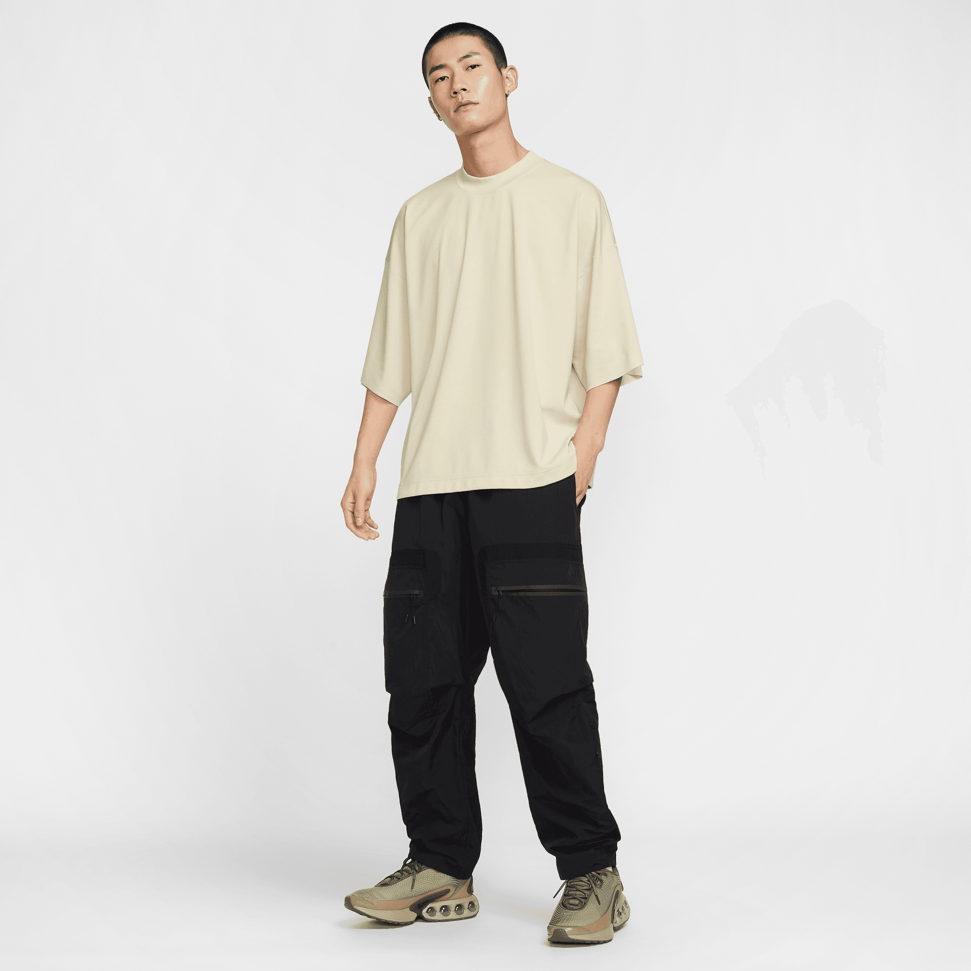 Stay cool in this soft and breathable mock-neck. The oversized fit and raw sleeve edges give a distinct Nike Tech aesthetic.