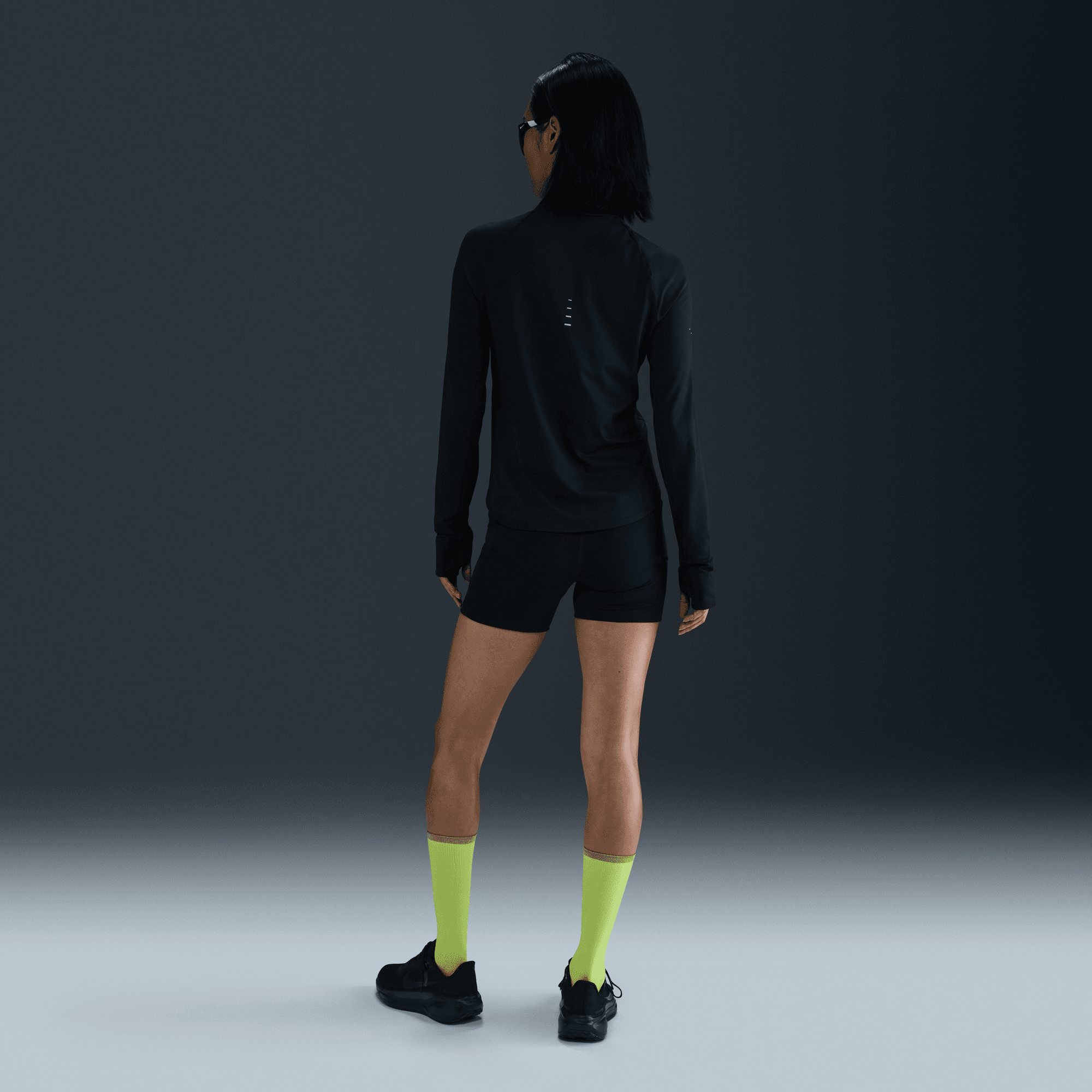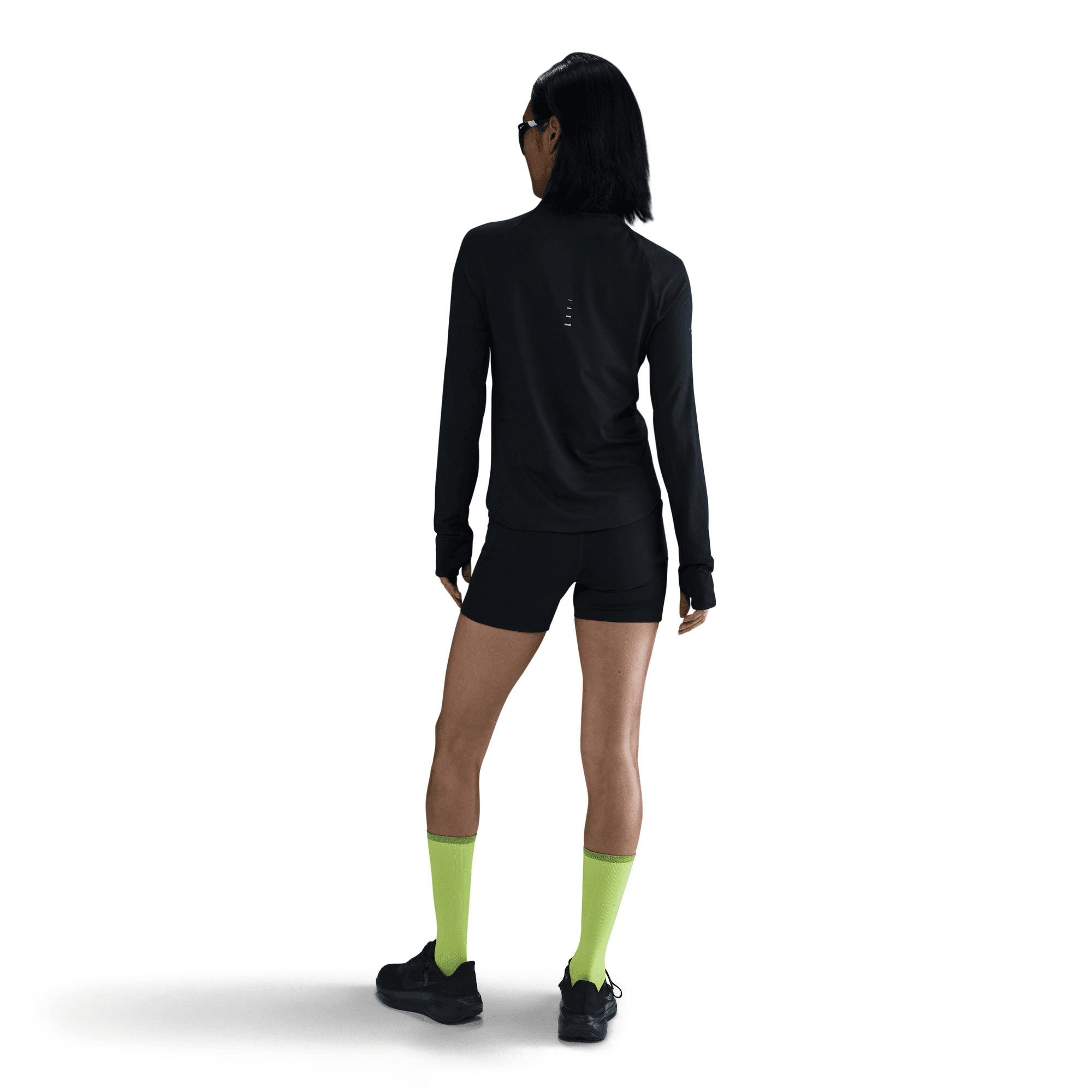The top is tapered around the waist so that layering with other pieces is easier. A curved hem helps keep you covered through your stride. Plus, thumbholes let you extend your coverage and help hold the sleeves in place.