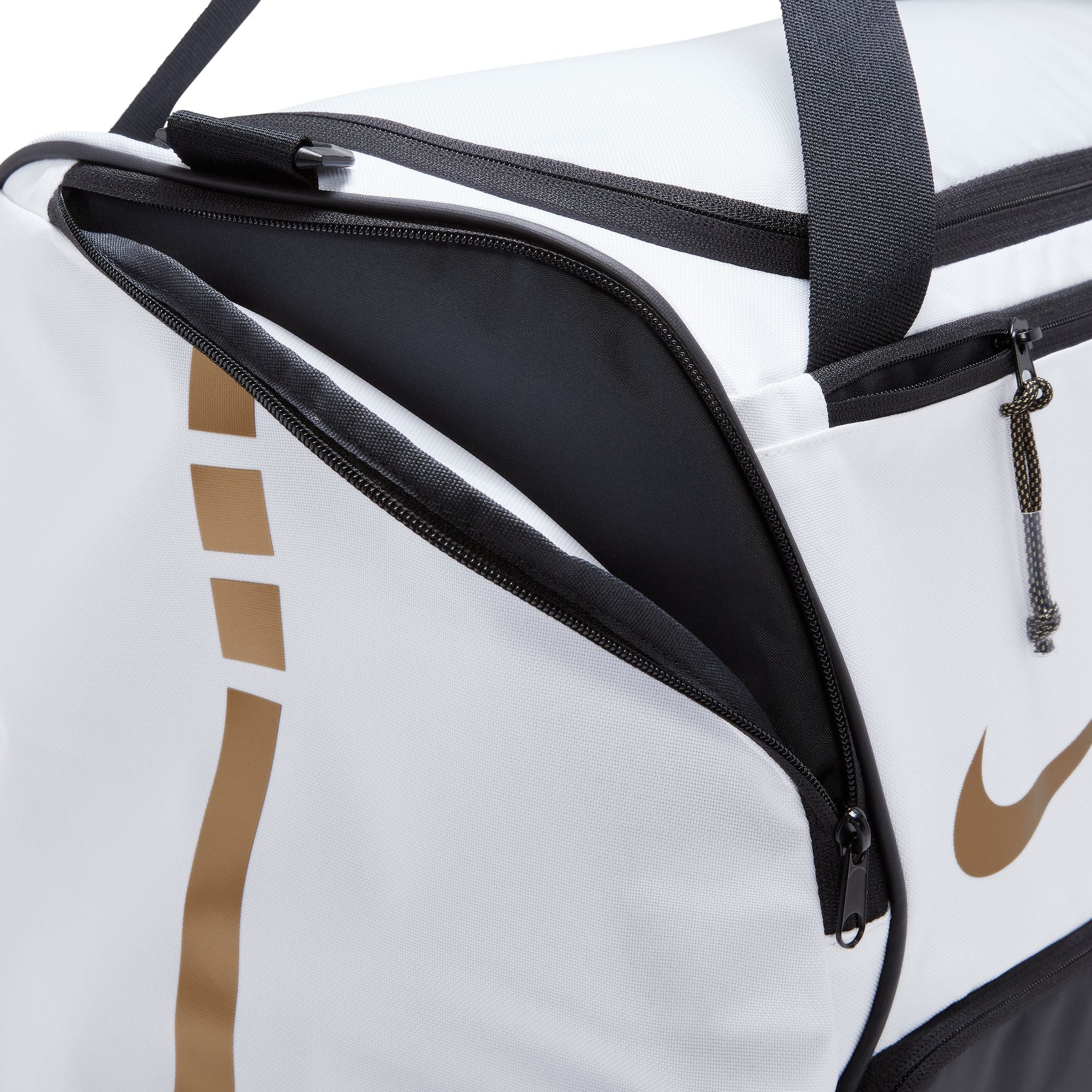 Wherever your game takes you, take the gear you need to succeed. The Nike Hoops Elite Duffel Bag has plenty of room for all the gear you need on and off of the court, including a ventilated zippered bottom compartment to store your favorite pair of sneakers. Throw it onto your shoulder or grab the dual handles and get going to your favorite local court to swish that half-court shot.