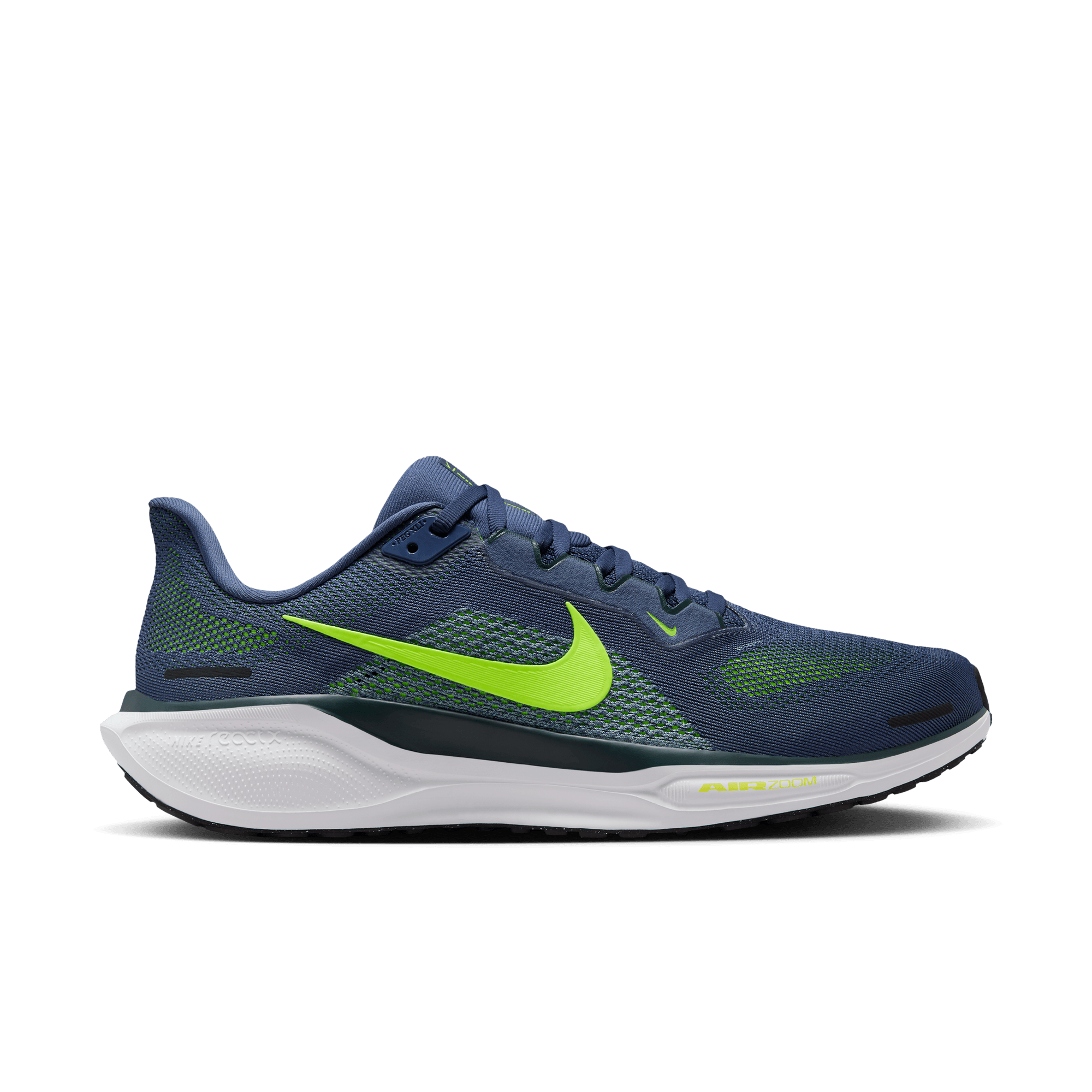 Responsive cushioning in the Pegasus provides an energized ride for everyday road running. Experience lighter-weight energy return with dual Air Zoom units and a ReactX foam midsole. Plus, improved engineered mesh on the upper decreases weight and increases breathability.