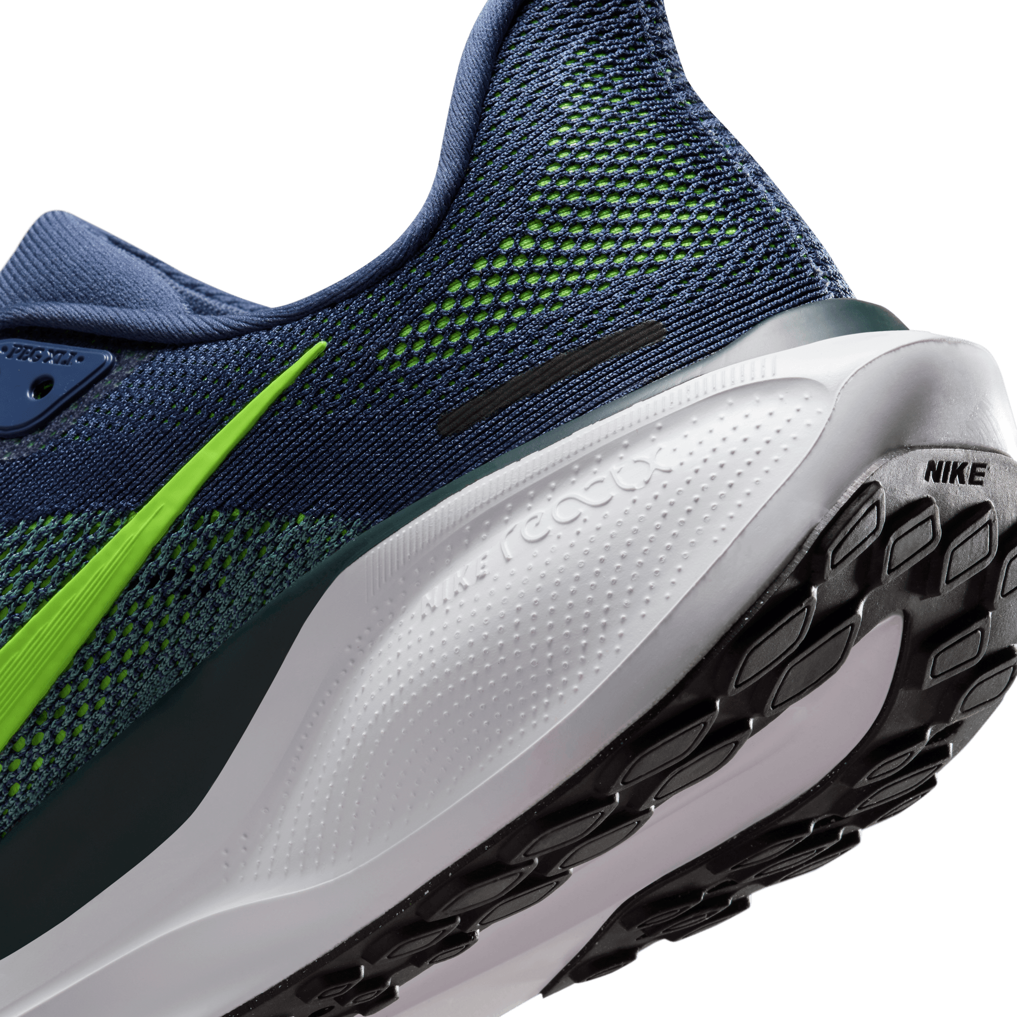 ReactX foam midsole surrounds forefoot and heel Air Zoom units for an energized ride. It's 13% more responsive than previous React technology.