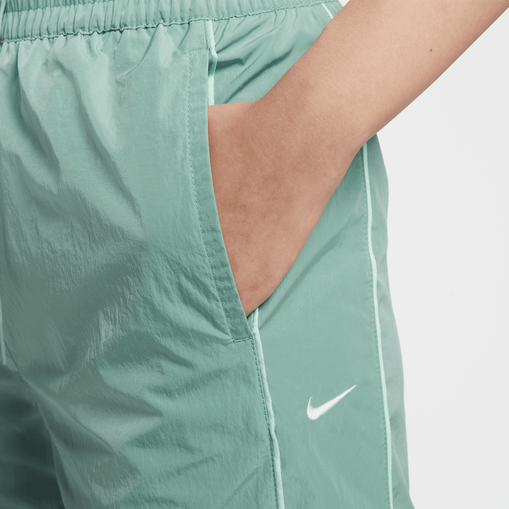 Reaching back to our roots, these easy-fitting pants pull inspiration from the Nike looks of the '7s. A water-repellent finish and UV technology built into the crinkle-woven fabric help keep you good to go come rain or shine.