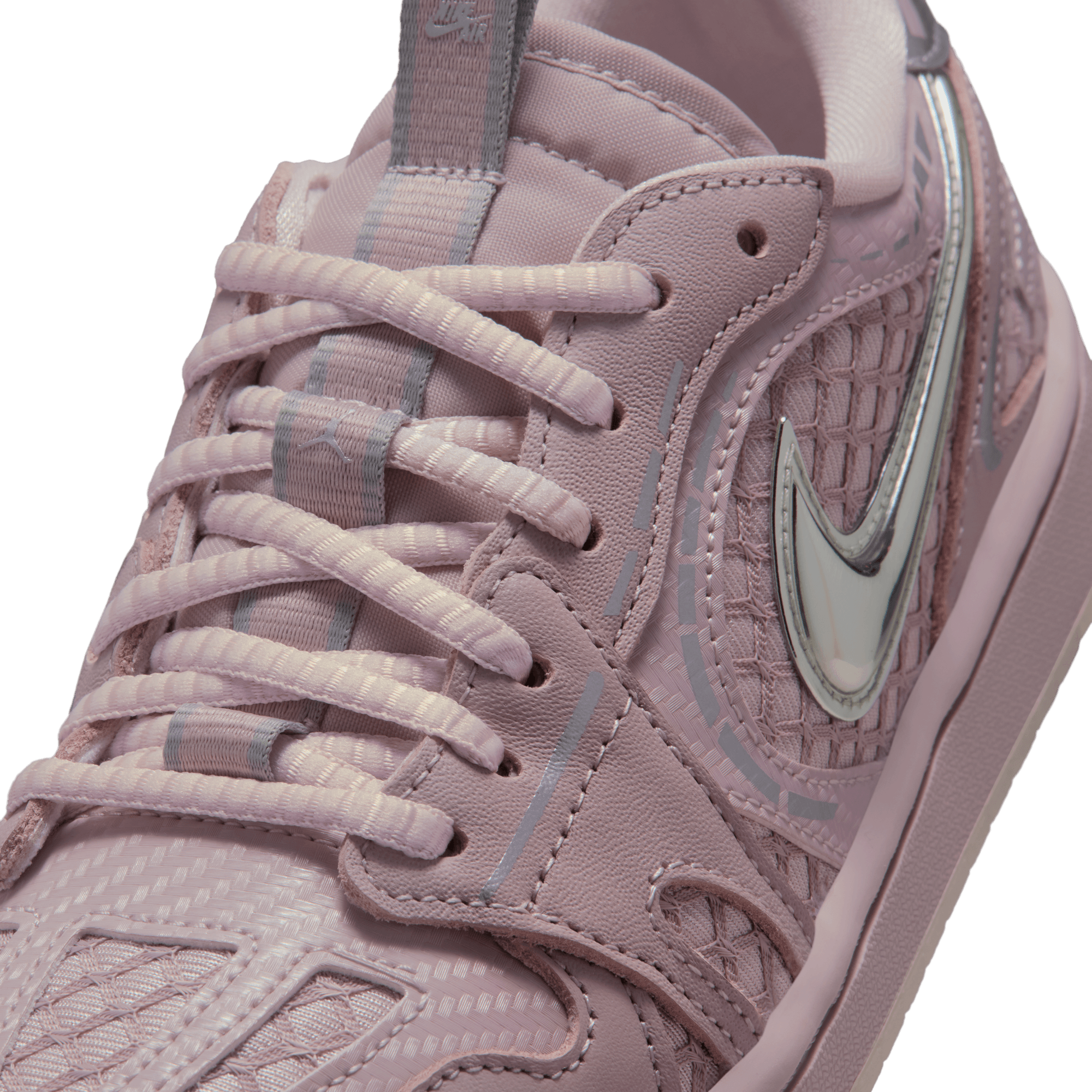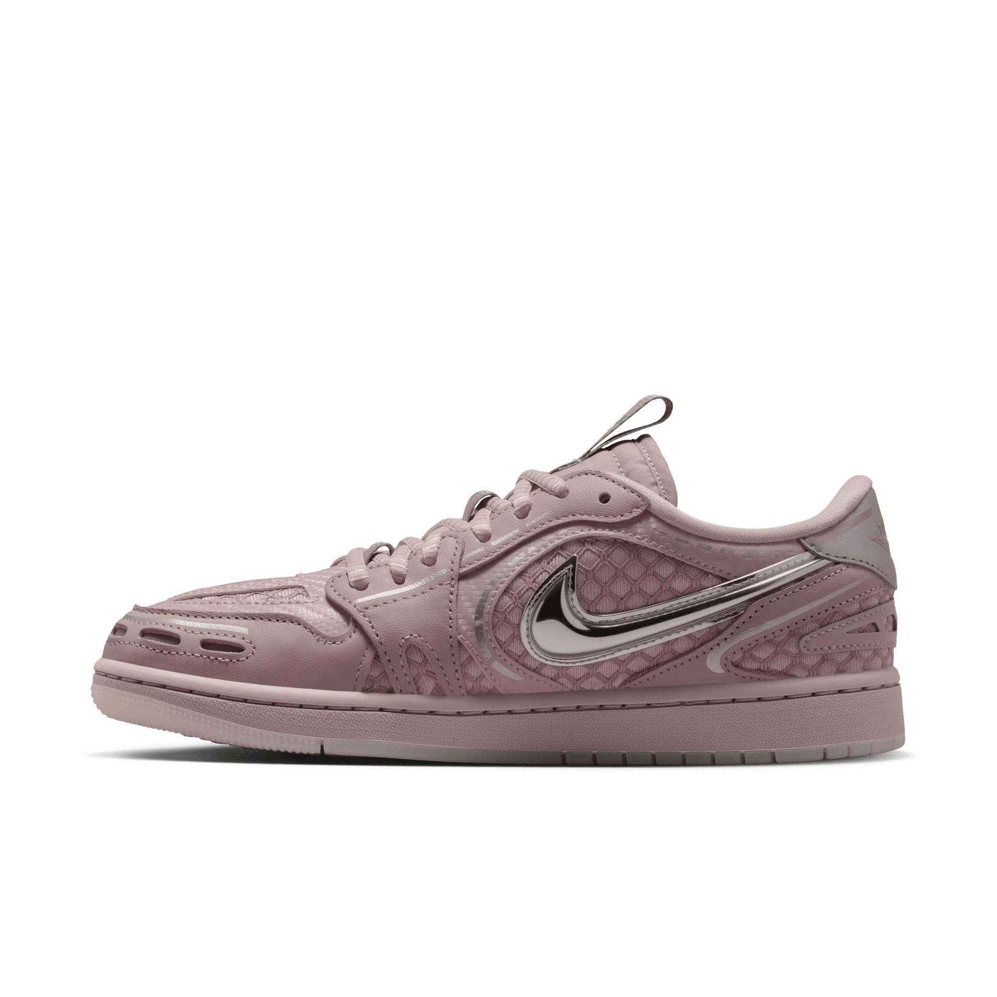 Our latest Method of Make series takes the instantly recognizable AJ1 and infuses it with serious tech runner style. Luxurious metallic leather pairs with breezy textile panels to create a richly layered design. A puffy Nike Swoosh logo sits on top of it all, rounding out the '00s running style.