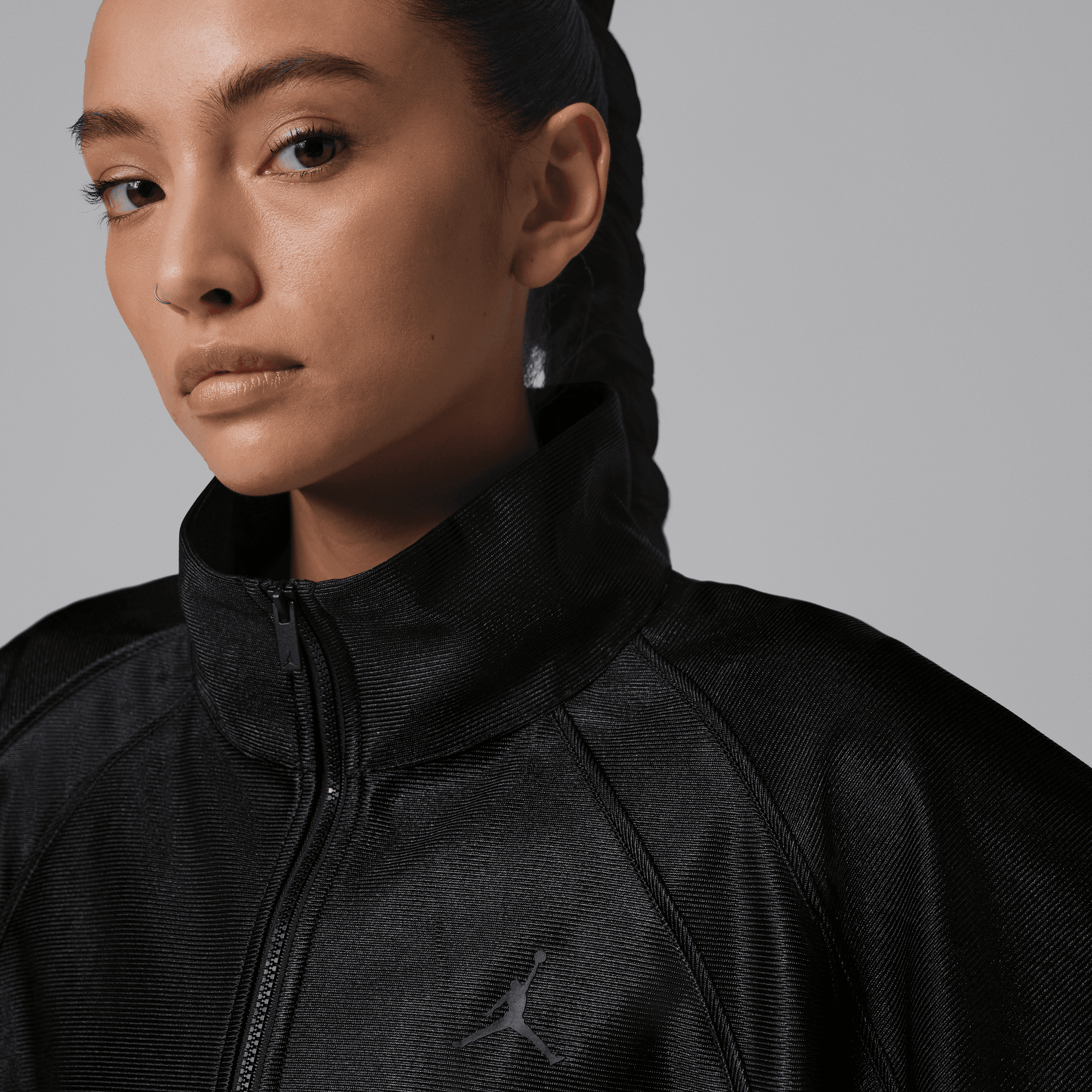 Bold, feminine style in a single-piece outfit. This take on the iconic Flight Suit is made of woven material with a distinct sheen for a standout look. The fit's loose and the details are there, like the mock neck, the elastic waistband and cuffs, and the subtle piped Wings lines.