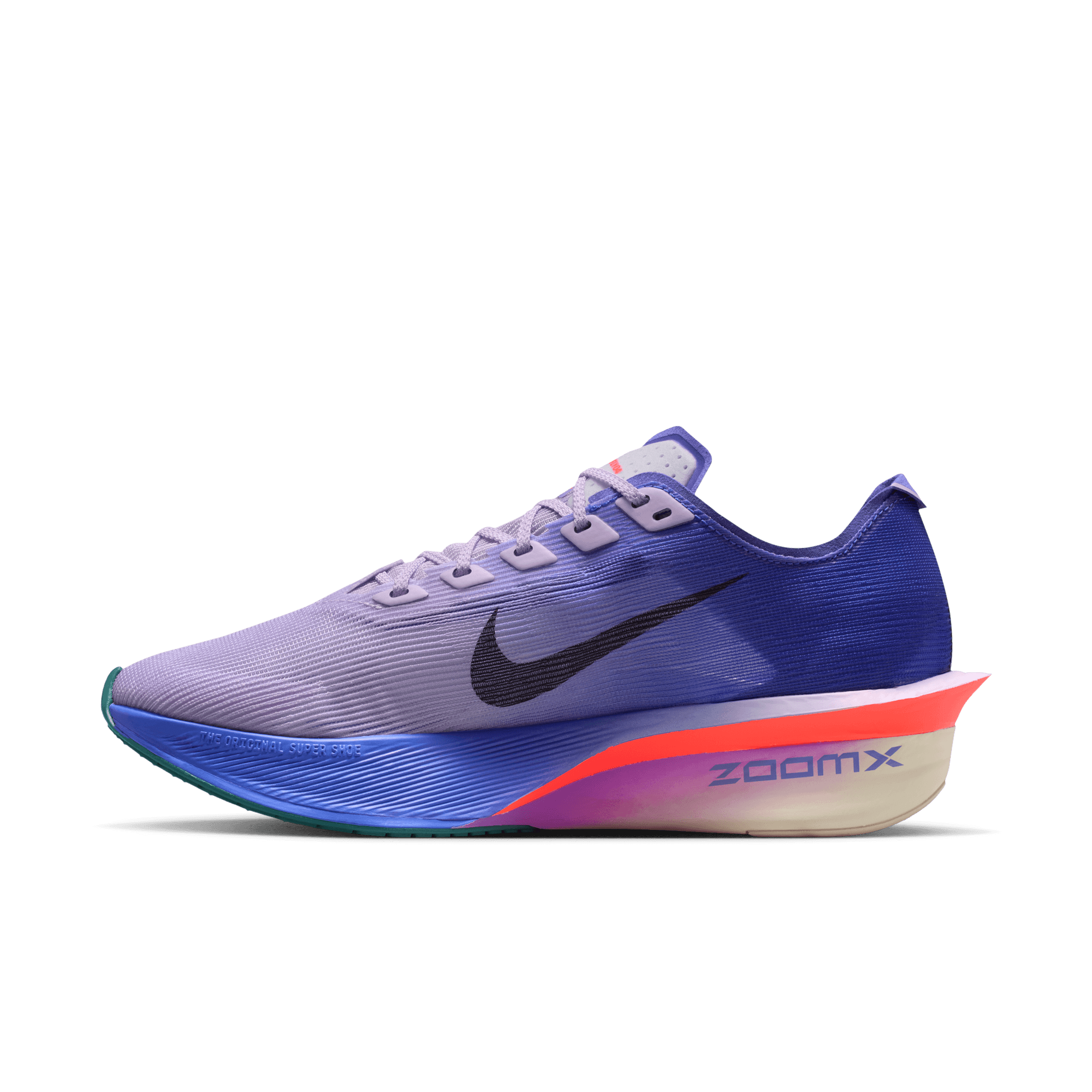 Nike ZoomX foam, our most responsive foam, just got faster. Running from heel to toe, it unlocks even more energy return than before thanks to a slight midsole reduction, giving you a bouncy feel.