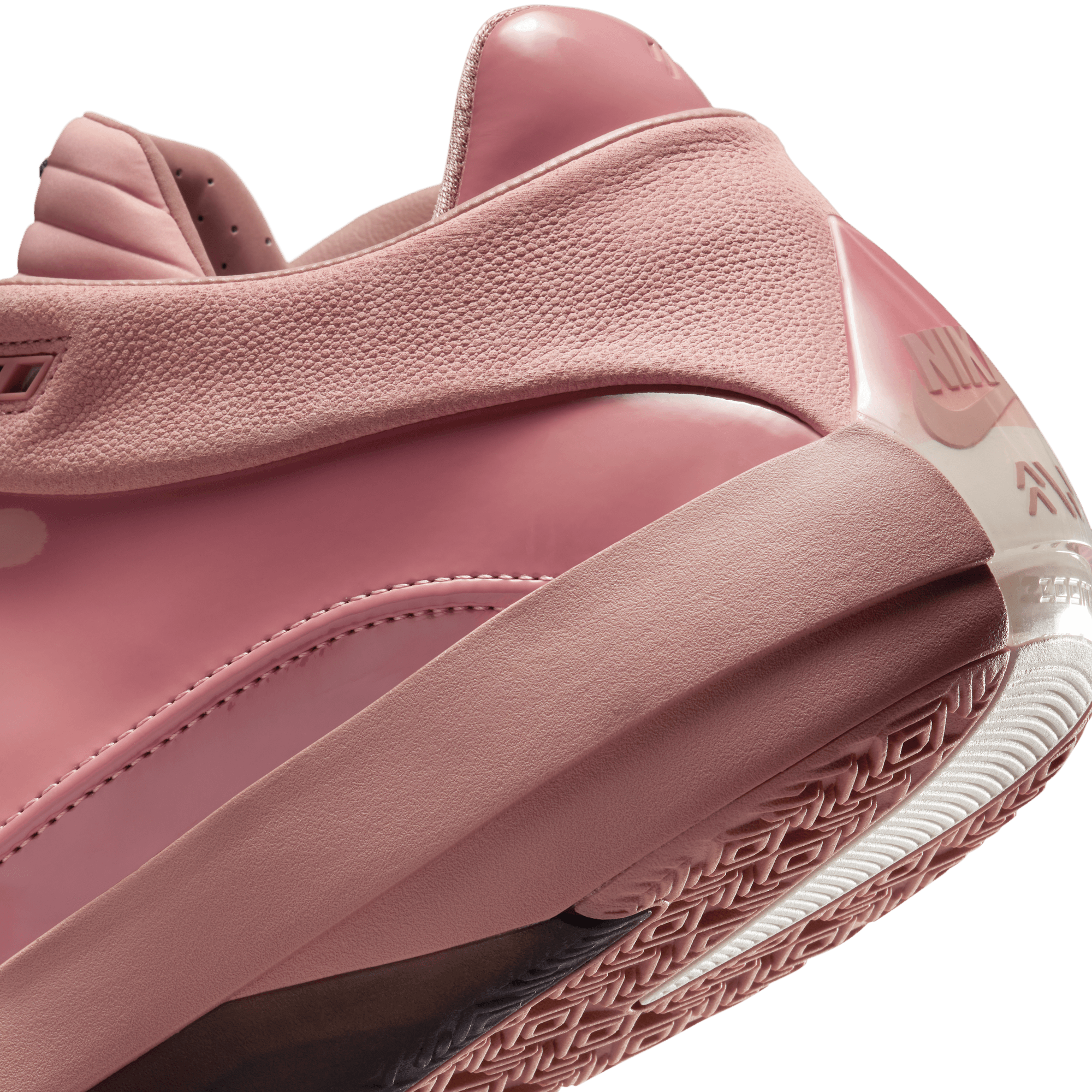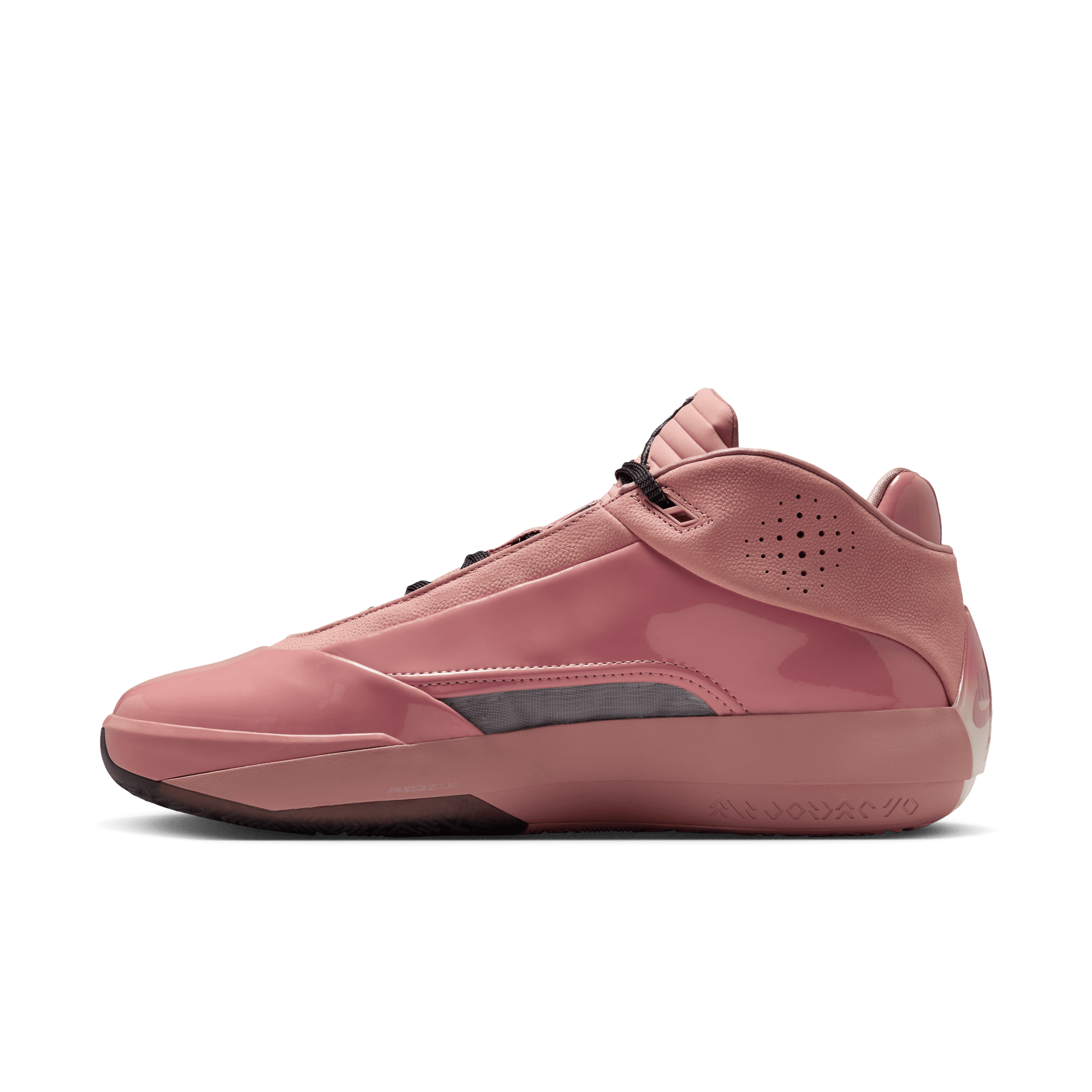 There's only one way to celebrate 40 years of Air Jordans. You gotta do what's never been done. For the first time, we stacked a full-length Zoom Strobel unit on top of full-length ZoomX foam for responsive, marathon-level cushioning. Up top, internal straps work with premium materials to give you optimal containment. Underfoot, a unique herringbone traction pattern helps you leave defenders guessing. Patent and pebbled leather—both pink—give you a high-energy look. Cushioning. Bounce. Traction. It's almost too easy.