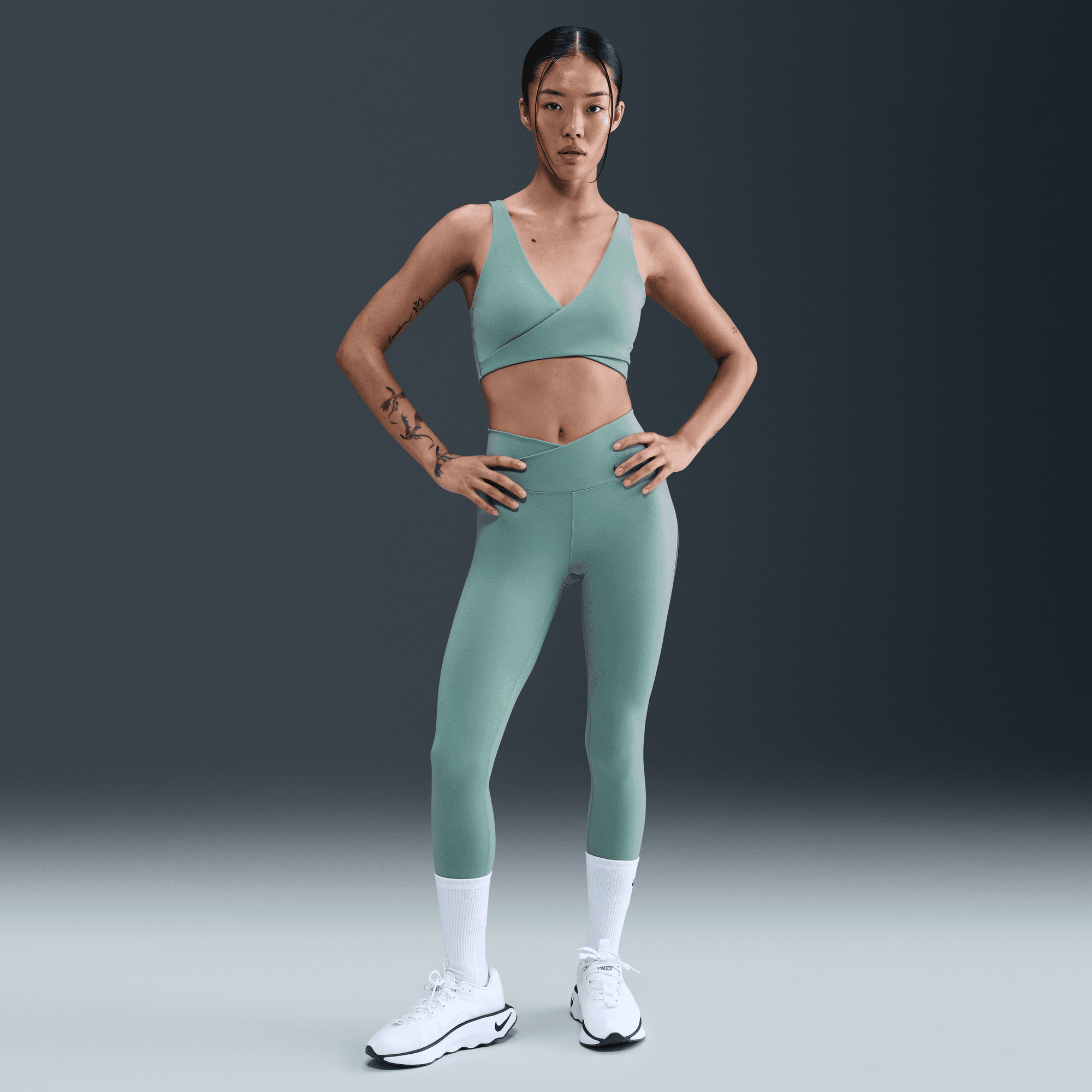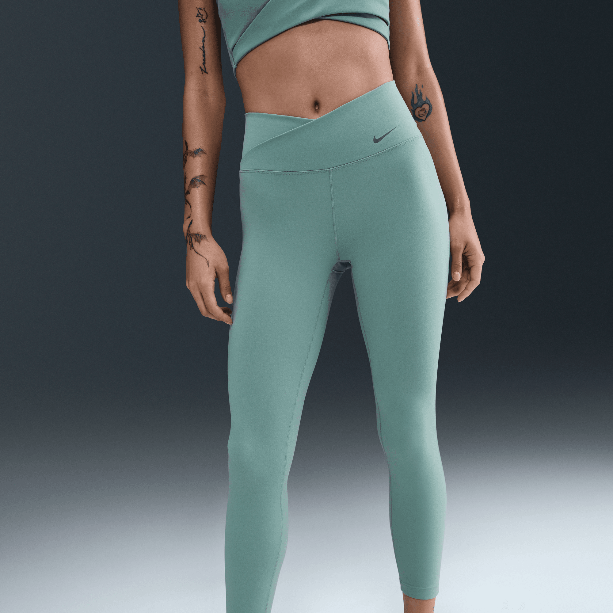 Nike One works for it all. Elevated with sheer panels down the legs and a crossover waistband, these midweight, peachy-soft leggings stretch with your every move and dry quickly.